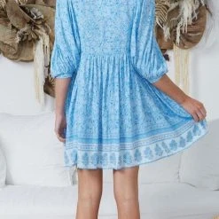 Iris Maxi 201498-13 Soft Blue Long 3/4 Sleeve Rayon Dress