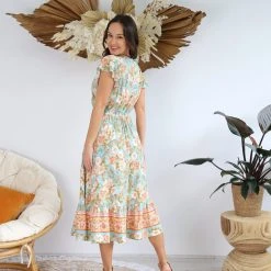 Salty Bright S0442-38 Long Mint & Orange Floral Boho Dress