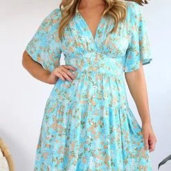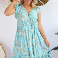 Salty Bright S0584-139 Aqua Floral Rayon Dress