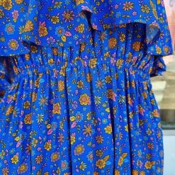 OZ RESORT Royal Blue Floral Bandeau Maxi Dress 100 % Rayon
