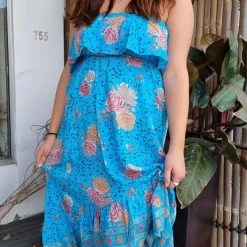 OZ RESORT Aqua Floral Bandeau Maxi Dress 100 % Rayon