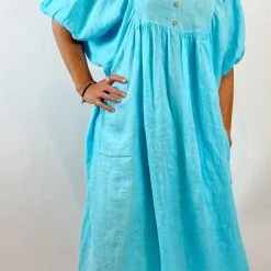 La Strada LSD21-938 Italian Linen Loose Wooden Button Kaftan Dress