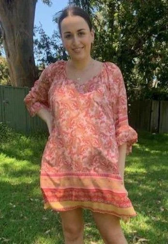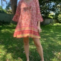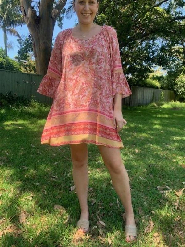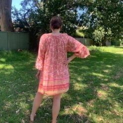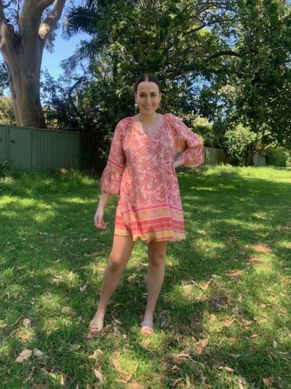 Beautiful mid-sleeved Pink & Red Floral Dress dress, is now available!