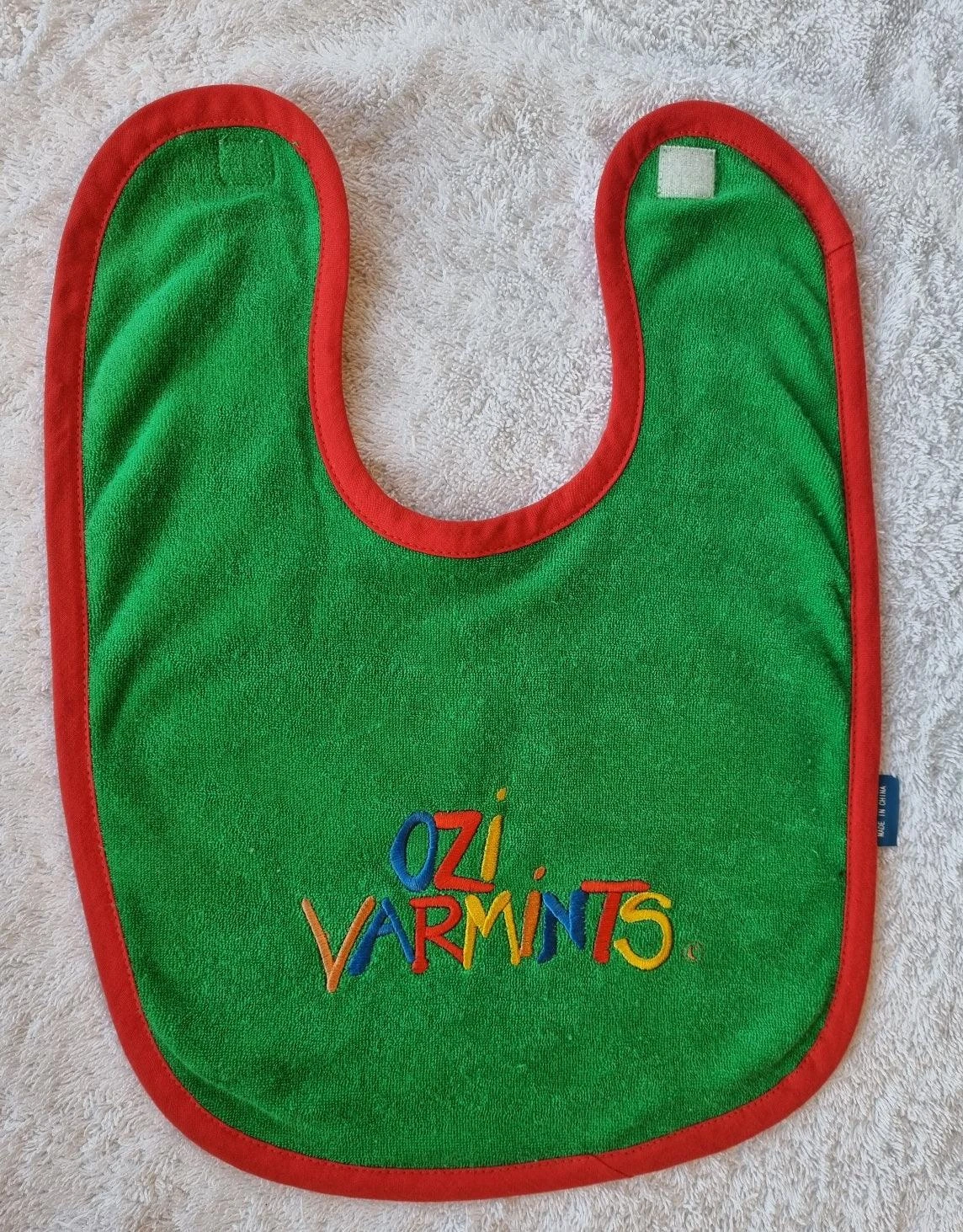 9057E Ozi Varmints Towelling Embroidered Bib – Sun/Red