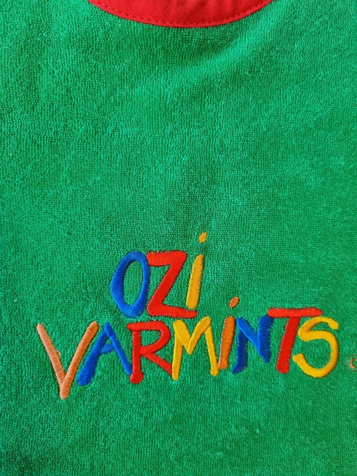 9057E Ozi Varmints Towelling Embroidered Bib – Sun/Red