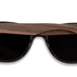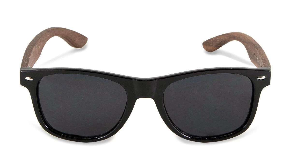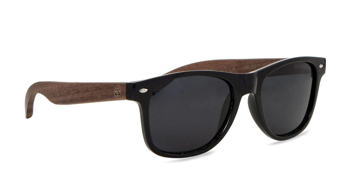 Soek FORRESTERS -Black Sustainable Sunglasses With Walnut Wooden Arms And Blue Polarized Lens – Adult