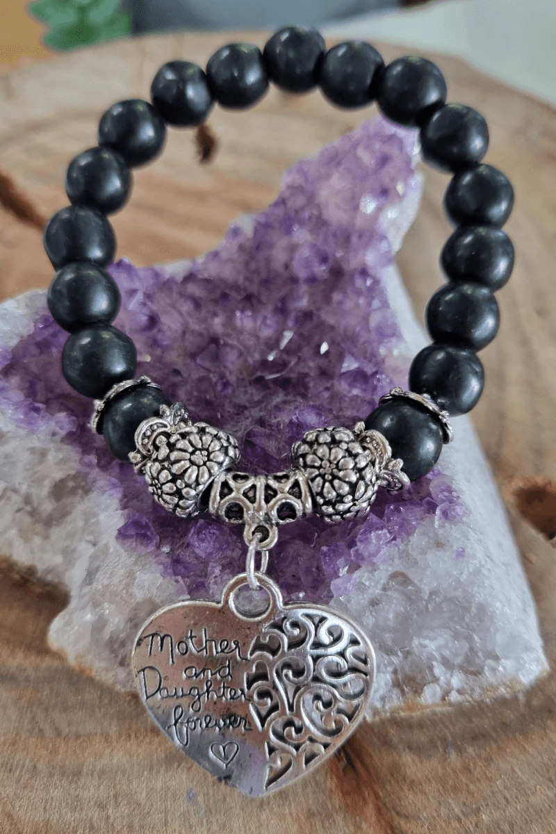 For the one who protected you most, our Protective Black Bracelet is the perfect gift for a special mama in your life. Or treat yourself to some good vibes! This piece is made up of black semi precious natural beads on an adjustable stretch string bracelet and features silver plated Mother & Daughter Inscription