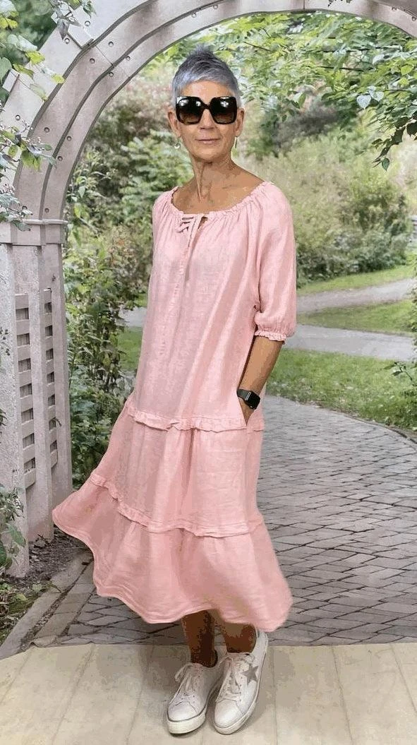 Be the first to review “La Strada LSD21-996P Wide Neck Shoulder Linen Cotton Dress Rosa Pink” Cancel reply