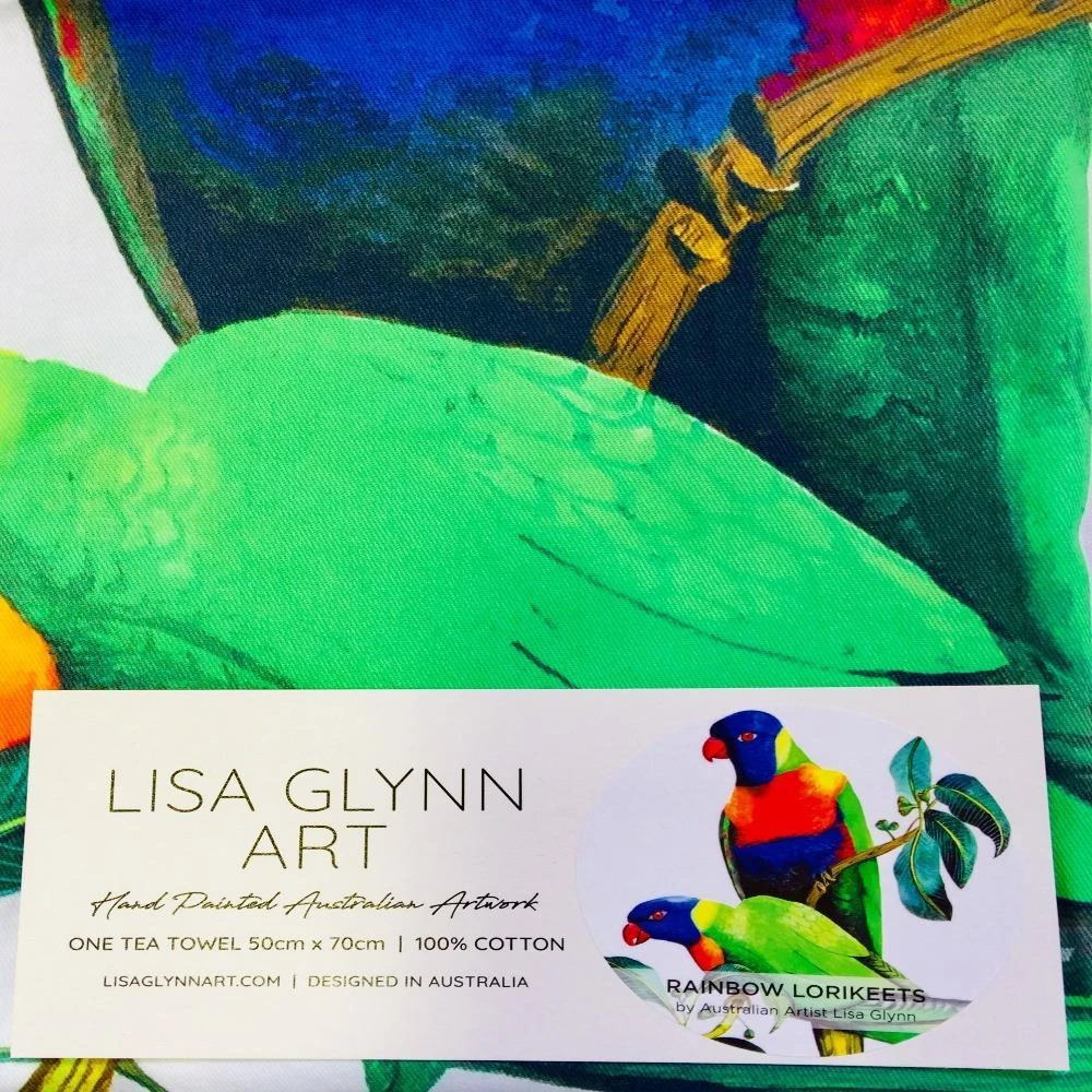 - This tea towel was originally painted by Lisa Glynn in beautiful rich water colours in approximately 2 hours. We then double printed in environmentally friendly soya inks. Fade fast and very durable.