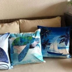 These cushions are fade proof, printed in soya, sustainable inks, Double sided print. Can be used outdoors but not left in the weather.