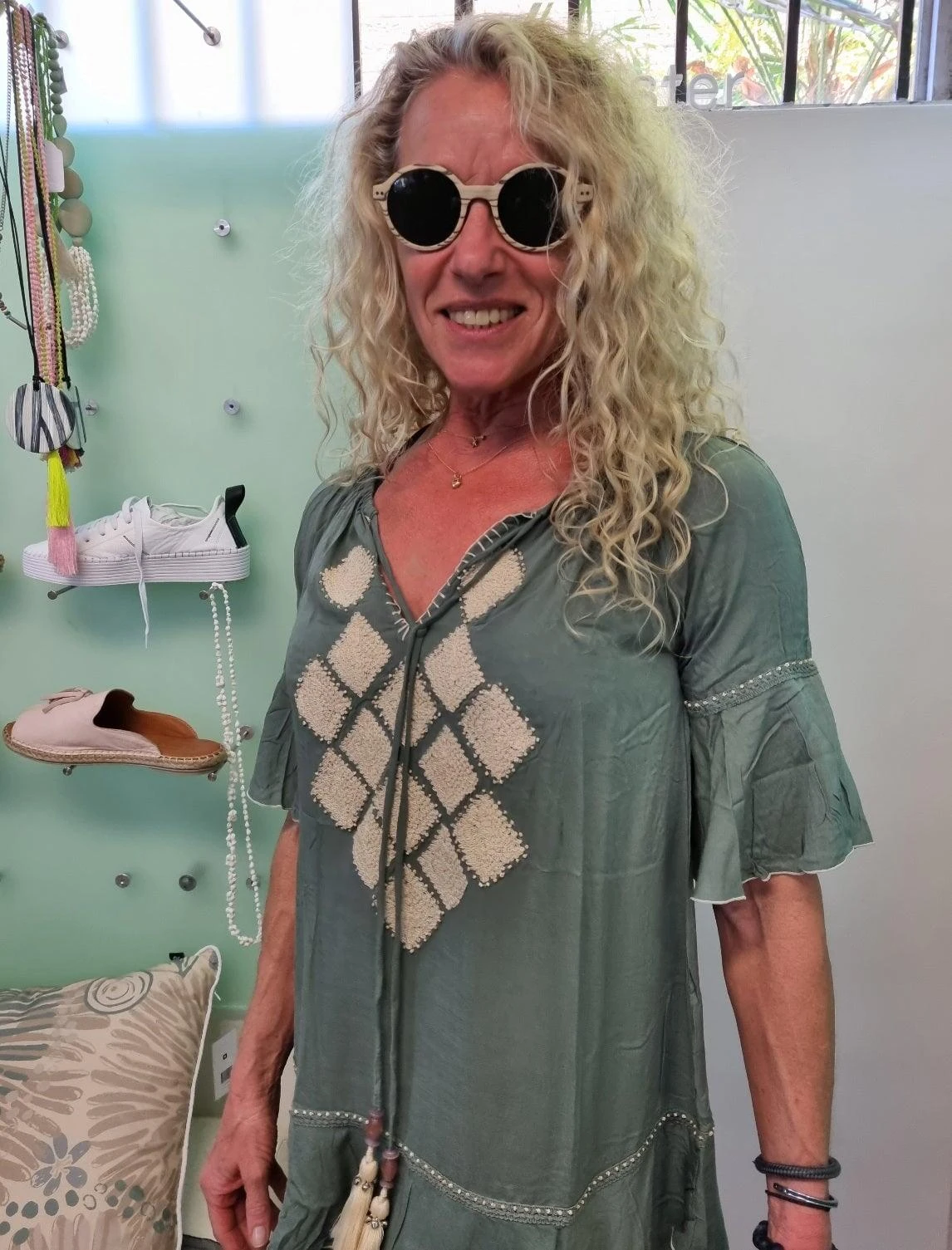 Beautifully made soft lightweight rayon for those hot days or summer nights Favourite beach kaftan or summer dress. Wear with our Bueno Slides