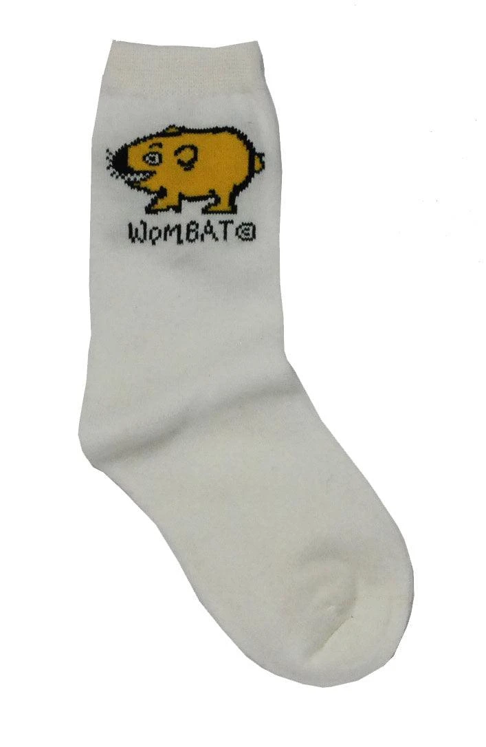 Ozi Varmints White Socks – Wombat, White Coloured Socks Sourvenir Socks, aussie socks, kids sox, childrens socks