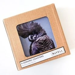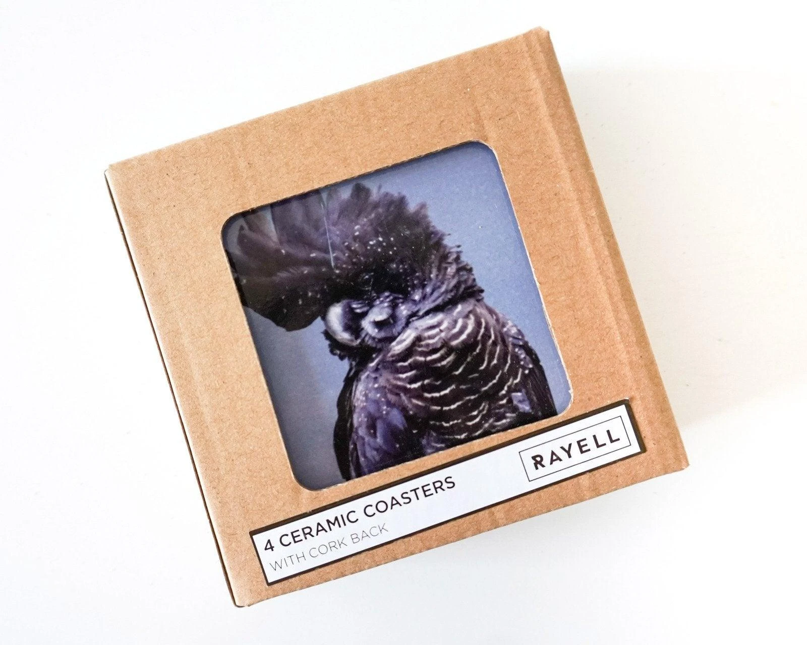 These gorgeous Black Cockatoo coaster will bright any table. They are sold in a set of 4 with a thick ceramic sturdy glass finish with a non slip cork backing.