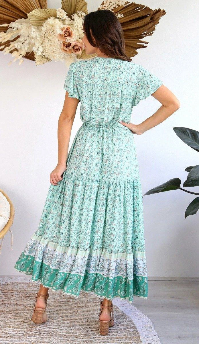 Wear with heals, and let your hair down with this gorgeous aqua printed boho dress