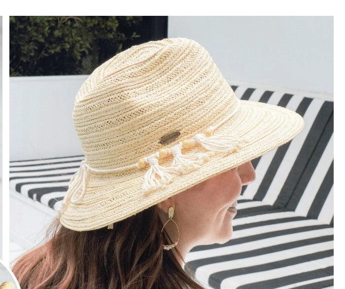 Sundaise SH370 Emma Panama Girl’s Hat With Blush Ribbon Natural