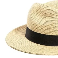 Beautiful quality Panama raffia Hat with olive stripe and raffia detail