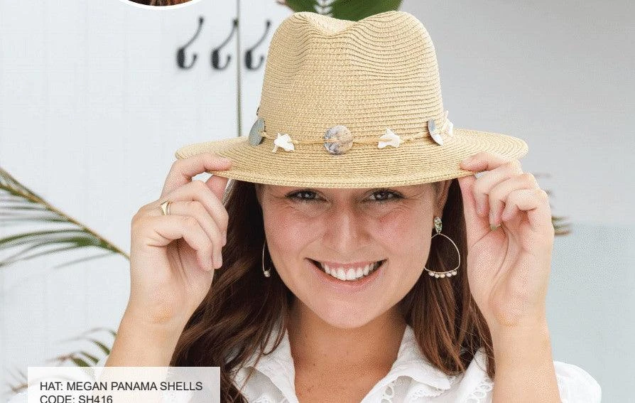 Sundaise SH416 Megan Panama Raffia Hat with Shells