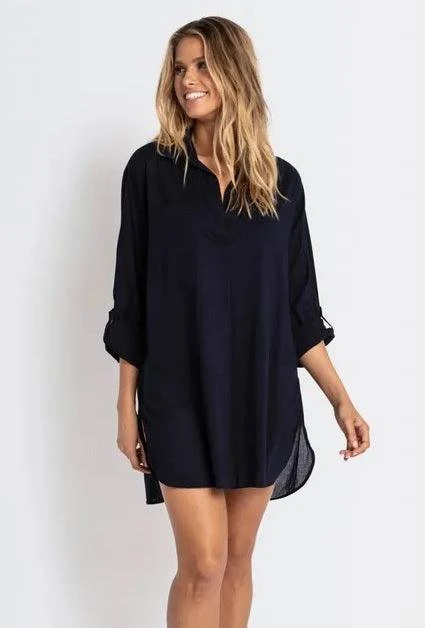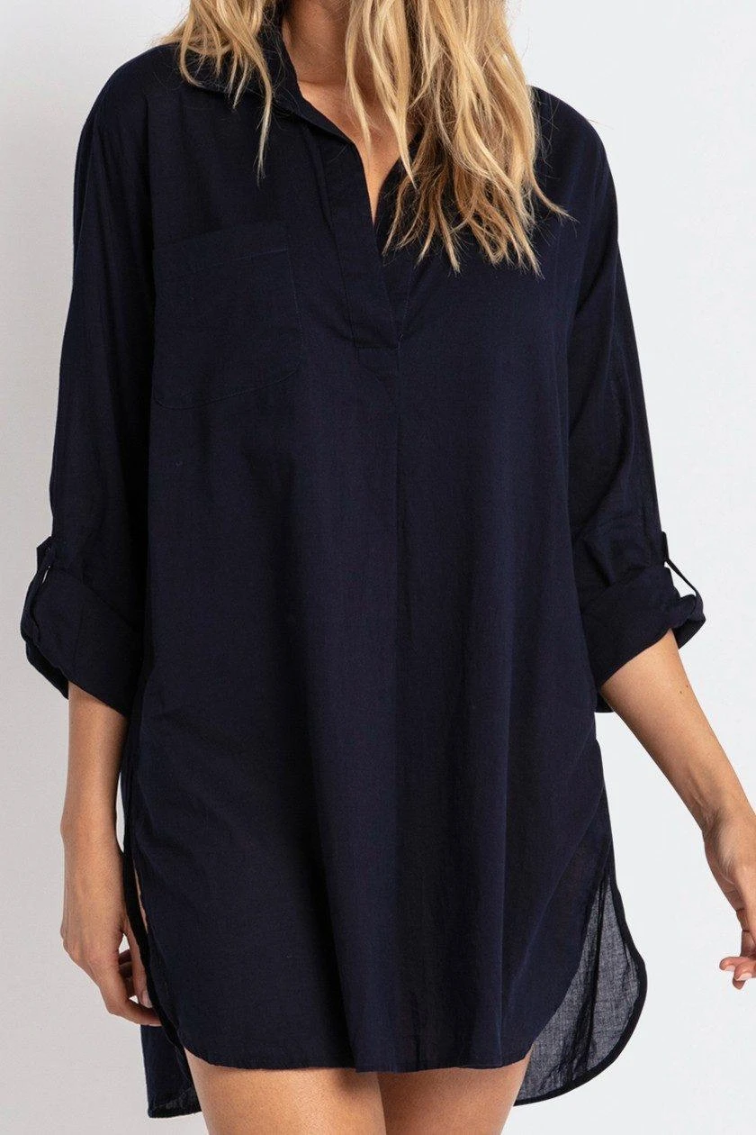 Our classic painters shirt is the perfect easy throw-over for the beach, by the pool, or even at home during summer! With a comfy generous fit and side splits, this shirt will keep you cool all day long. Features long roll sleeves for sun coverage and side pocket detail. 100% cotton.