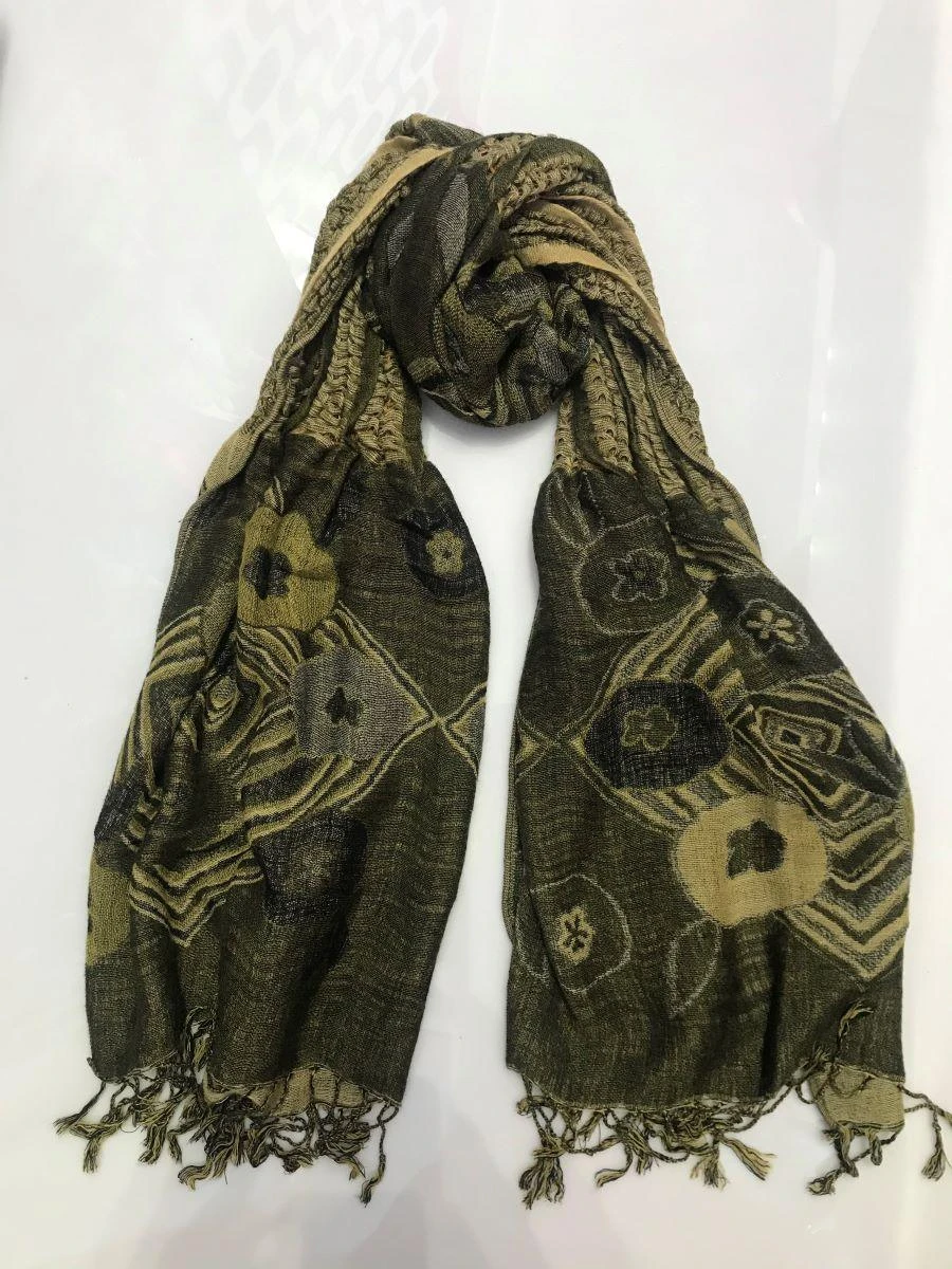 This stunning shawl is crafted with fringed edges for a classic finish.