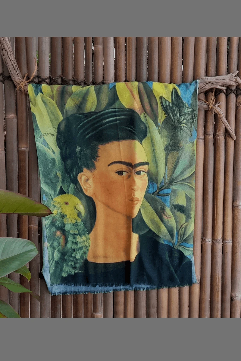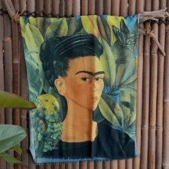 With the colours of her paintings, this true to life Frida Kahlo Scarf is crafted with fringed edges and silky soft to touch.